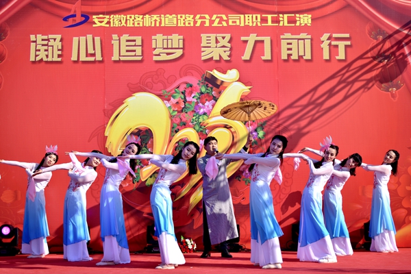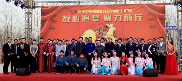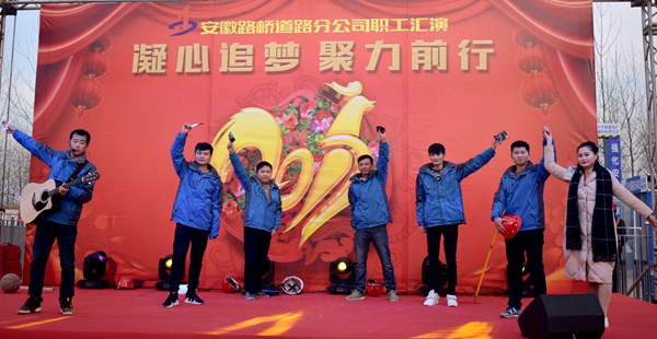 12月18日下午,道路分公司“凝心追夢 聚力前行”職工文藝匯演在合寧高速改擴建05標項目精彩上演。合寧高速改擴建項目辦主任楊慶云,公司黨委書記、董事長、總經理孫學軍,副總經理杜海峰,工會主席楊建強,總經理助理江仲明和一線職工歡聚一堂,共同觀看了演出。