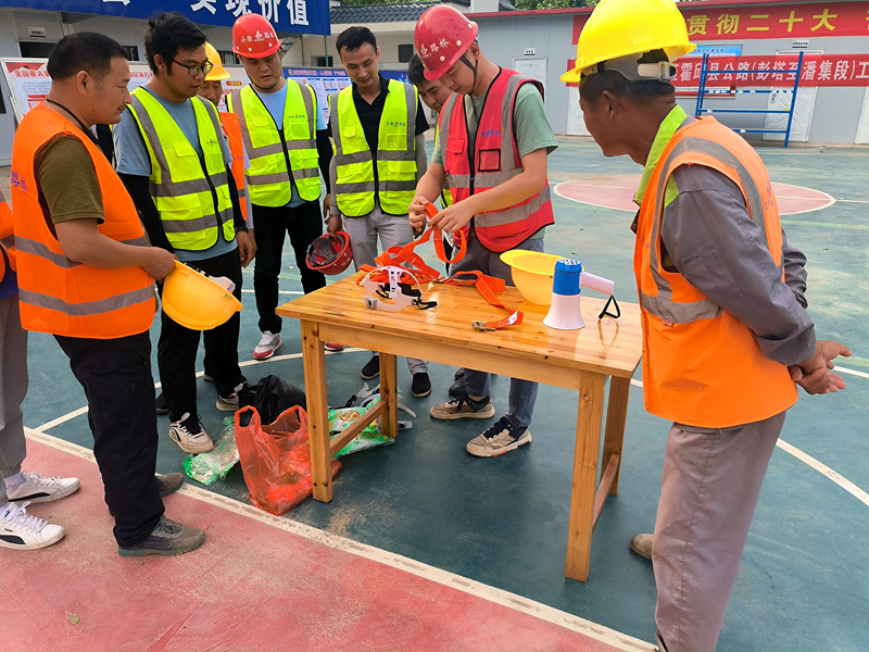 為更好地防范夏天雨水量較大易形成局部內澇的問題,項目部于5月中旬開展防汛應急演練,用時近2小時,主要圍繞暴雨、急洪水突發狀況下應急預案響應、執行、實施等科目展開,提高了項目管理人員和施工隊伍在汛情發生時的應對能力。同時,為進一步加強作業人員的安全技能,熟練使用勞動防護用品,有效面對突發情況,項目部于6月8日組織一線作業人員開展安全技能比賽:如何正確組裝安全帽及安全帶并使用、模擬火災場景運輸滅火器材等,真正做到“人人講安全、個個會應急”。