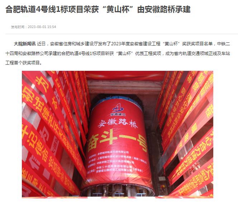 近日,安徽省住房和城鄉(xiāng)建設(shè)廳發(fā)布了2023年度安徽省建設(shè)工程“黃山杯”獎(jiǎng)獲獎(jiǎng)項(xiàng)目名單,中鐵二十四局和安徽路橋公司承建的合肥軌道4號線1標(biāo)項(xiàng)目斬獲“黃山杯”優(yōu)質(zhì)工程獎(jiǎng)項(xiàng),成為省內(nèi)軌道交通領(lǐng)域正線及車站工程首個(gè)獲獎(jiǎng)項(xiàng)目。