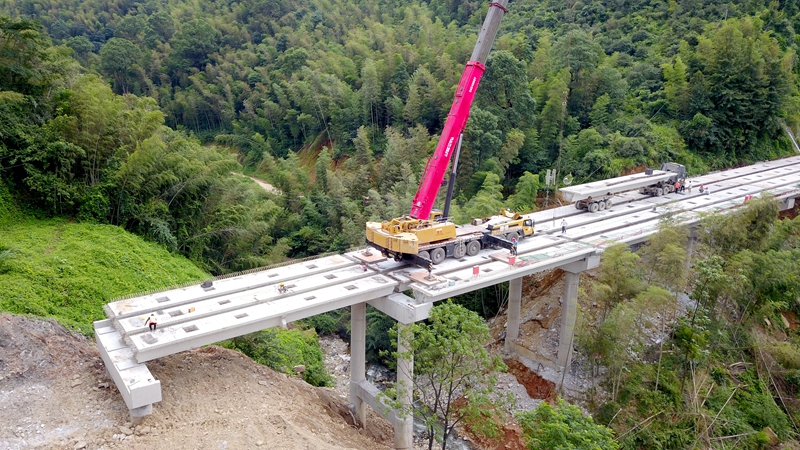 據(jù)了解,楊公山大橋位于遂川縣巾石鄉(xiāng)境內(nèi),分為右線和右外線,右線橋長(zhǎng)140米,右外線橋長(zhǎng)180米,共計(jì)60多片箱梁。為確保該橋梁板順利架設(shè),項(xiàng)目部針對(duì)施工特點(diǎn)、難點(diǎn)和重點(diǎn)及時(shí)做好安全技術(shù)交底工作,在施工過(guò)程中,項(xiàng)目部動(dòng)態(tài)優(yōu)化資源配置,采用了3臺(tái)炮車及2臺(tái)吊車同時(shí)進(jìn)行運(yùn)輸和架設(shè)作業(yè),克服了工期緊、運(yùn)梁路線長(zhǎng)等不利因素影響,順利地完成了架設(shè)任務(wù)。