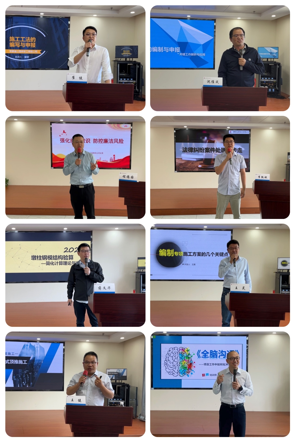 本次項目技術(shù)負責人培訓,以“基于崗位勝任能力要求實施針對性賦能培訓”為核心,把能力提升和學習活動結(jié)合起來,在施工工法的編寫與申報、QC成果課題編制及申報、專項施工方案編制、墩柱鋼模結(jié)構(gòu)驗算、跨既有道路橋梁施工、紀檢專題培訓、法務專題培訓以及通用管理等方面設(shè)置內(nèi)容,并進行動態(tài)管理和效果測試。