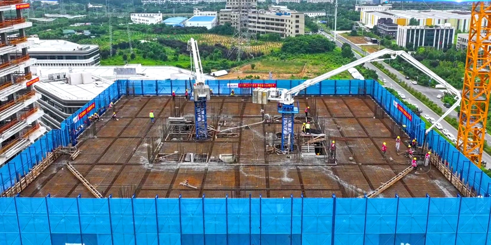 與傳統(tǒng)布料方式相比,液壓智能布料機(jī)優(yōu)勢(shì)顯著,“傳統(tǒng)布料機(jī)依賴人工操作,三伏天施工,施工人員不僅要忍受高溫,還存在布料精度難以保證的問(wèn)題,容易出現(xiàn)混凝土分布不均的情況。”韋鯤鵬介紹,而液壓智能布料機(jī)能夠?qū)崿F(xiàn)自動(dòng)化、精準(zhǔn)化布料,工人手持遙控器就能控制混凝土澆筑,提升了施工作業(yè)安全性,減輕了施工負(fù)擔(dān)。