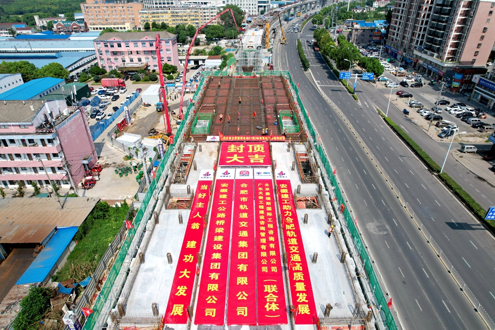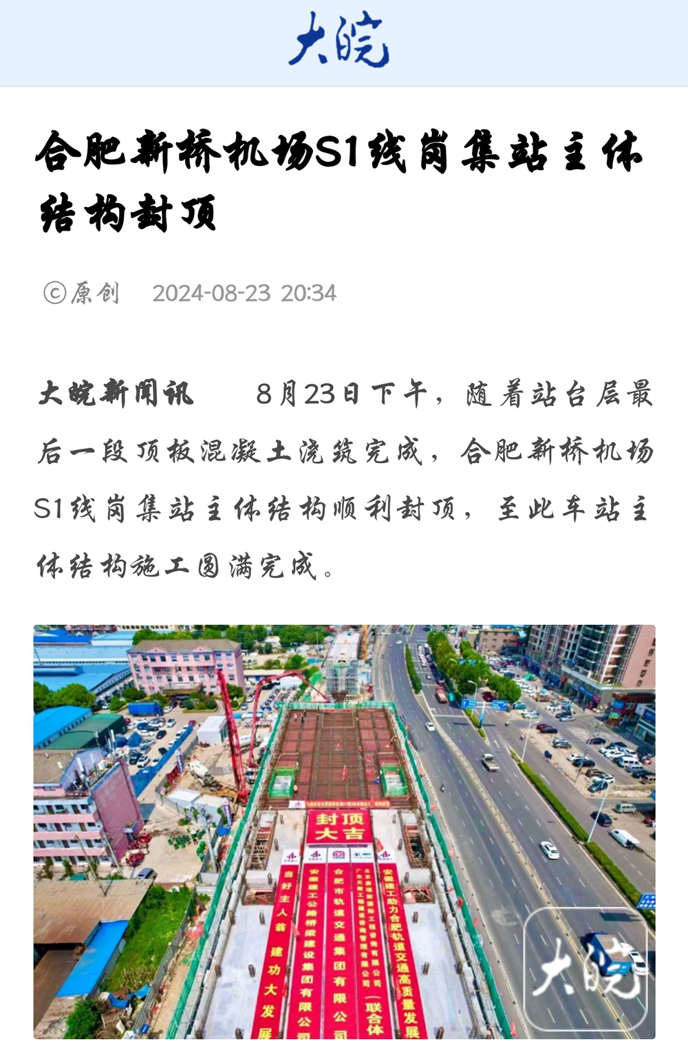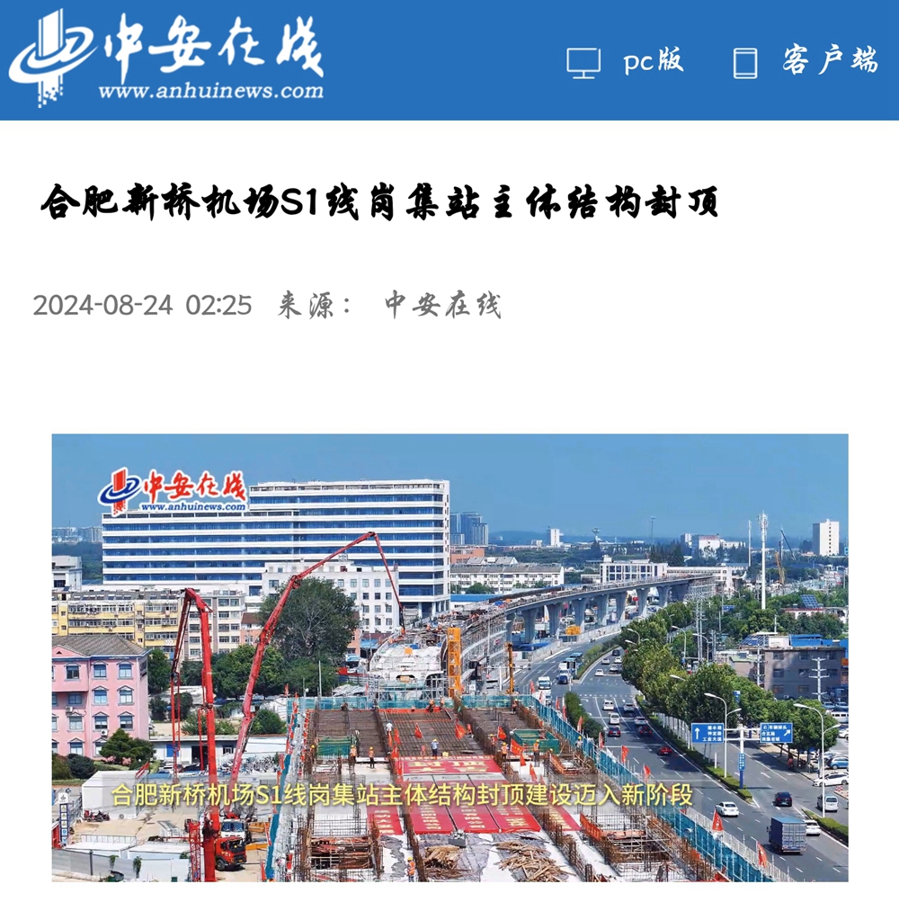 【名媒聚焦】央廣網、中安在線、安徽日報等主流媒體聚焦合肥新橋機場S1線項目崗集站主體結構封頂