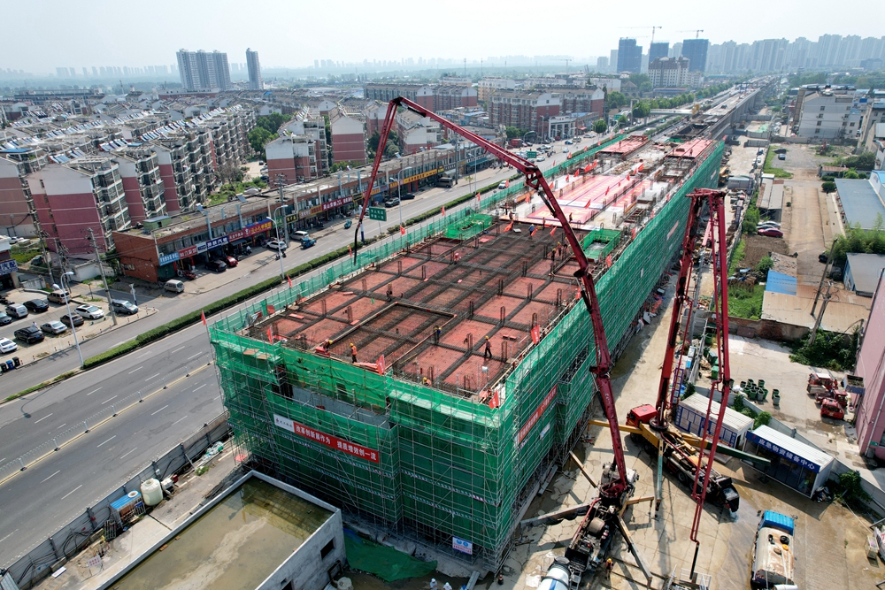 8月23日,隨著站臺層最后一段頂板混凝土澆筑完成,合肥新橋機場S1線崗集站主體結構順利封頂,標志著車站主體結構完工,站點建設邁入附屬結構施工新階段。