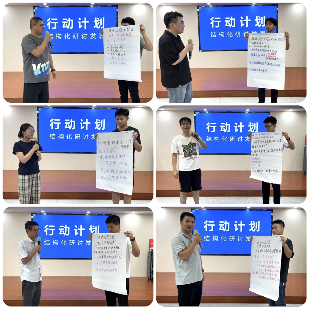 在為期三天兩晚的全封閉培訓期間,全體學員認真投入到培訓過程中,積極交流互動,彼此取長補短,高效完成了課程研討、項目案例萃取等多項培訓任務,并且通過深度座談、復盤總結、分享項目管理經驗,沉淀了一系列項目成本合約管理場景化課程及優秀項目管理案例。