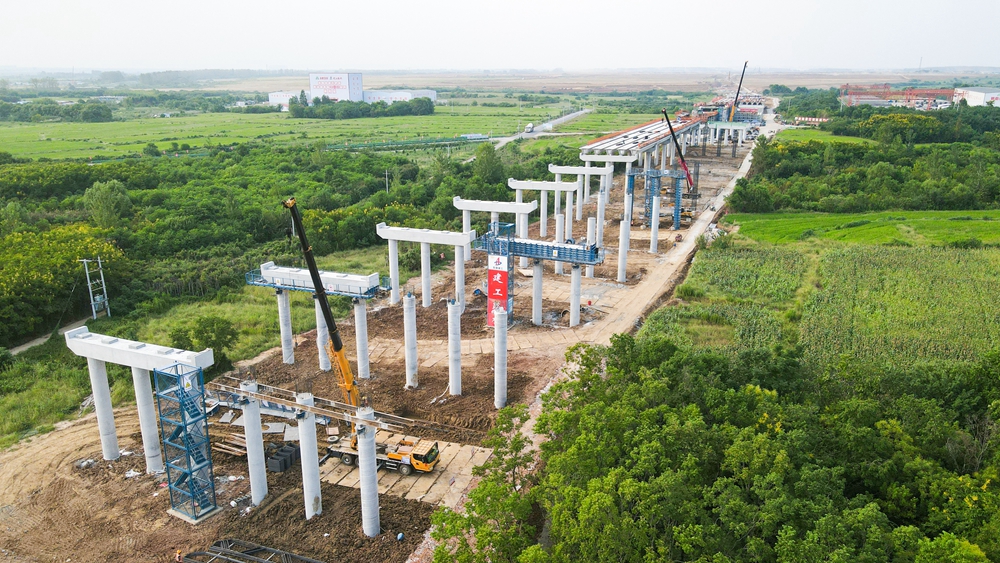 在合肥大外環西線,淮桐高速合肥段路基2標淠河總干渠大橋、引江濟淮特大橋引橋、大柏互通主線施工現場,300余名詮釋著勞模精神的施工建設者,沖刺工程進度,一心筑造回家的路。