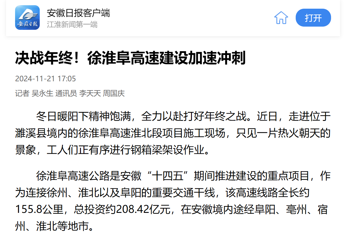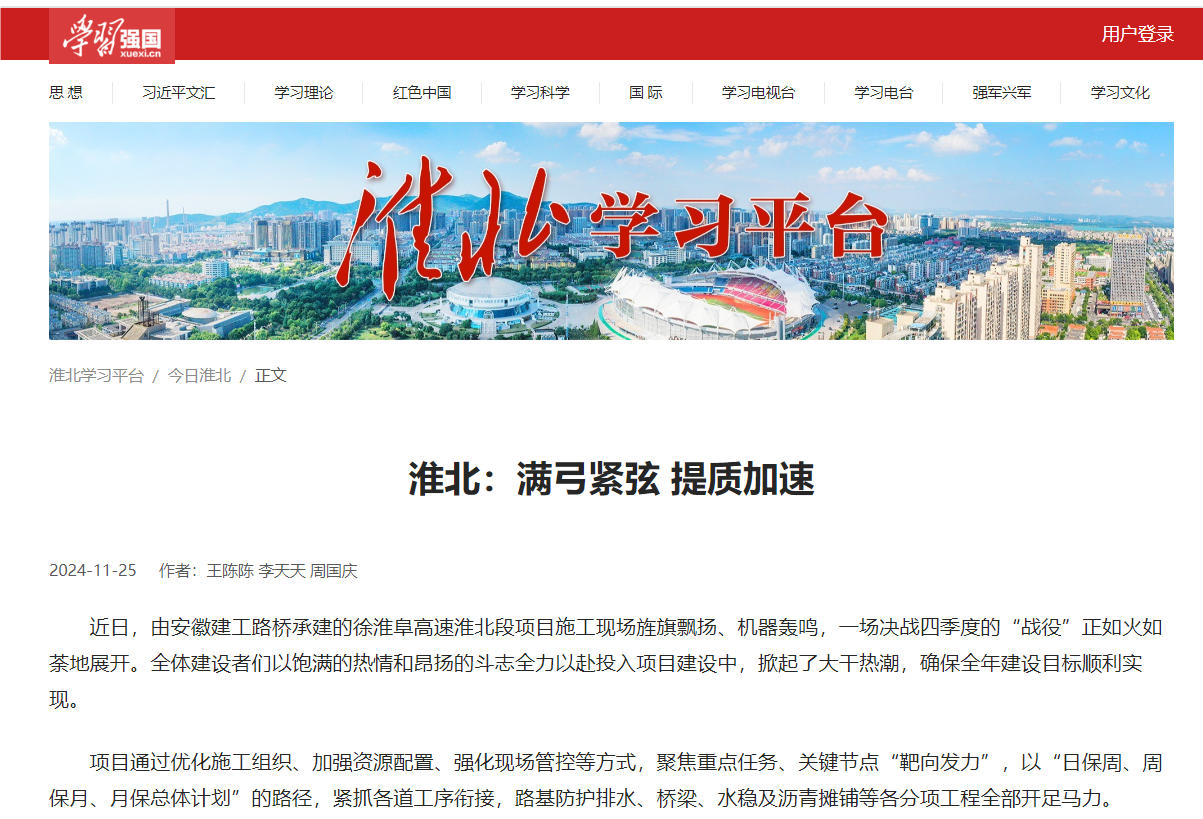 【名媒聚焦】安徽日報客戶端、學習強國、淮北日報:決戰(zhàn)年終!徐淮阜高速建設加速沖刺
