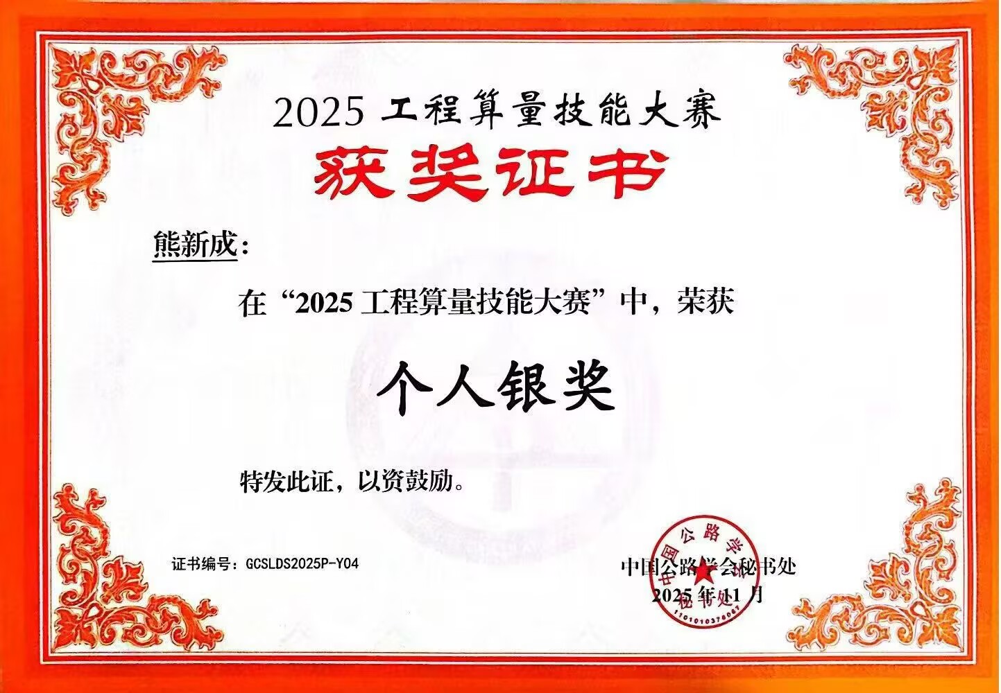 據悉,工程算量技能大賽是由中國公路學會主辦的全國性的交通基礎設施工程領域算量技能大賽。旨在提升工程管理人員算量能力和單位工作效能,夯實計量支付數字化基礎,提升工程項目精細化管理水平,推動工程管理降本增效和工程管理模式變革。面向“十五五”新發展階段,公司將繼續強化核心競爭力,為推動交通強國建設、服務區域經濟發展貢獻更多建工路橋智慧與力量。