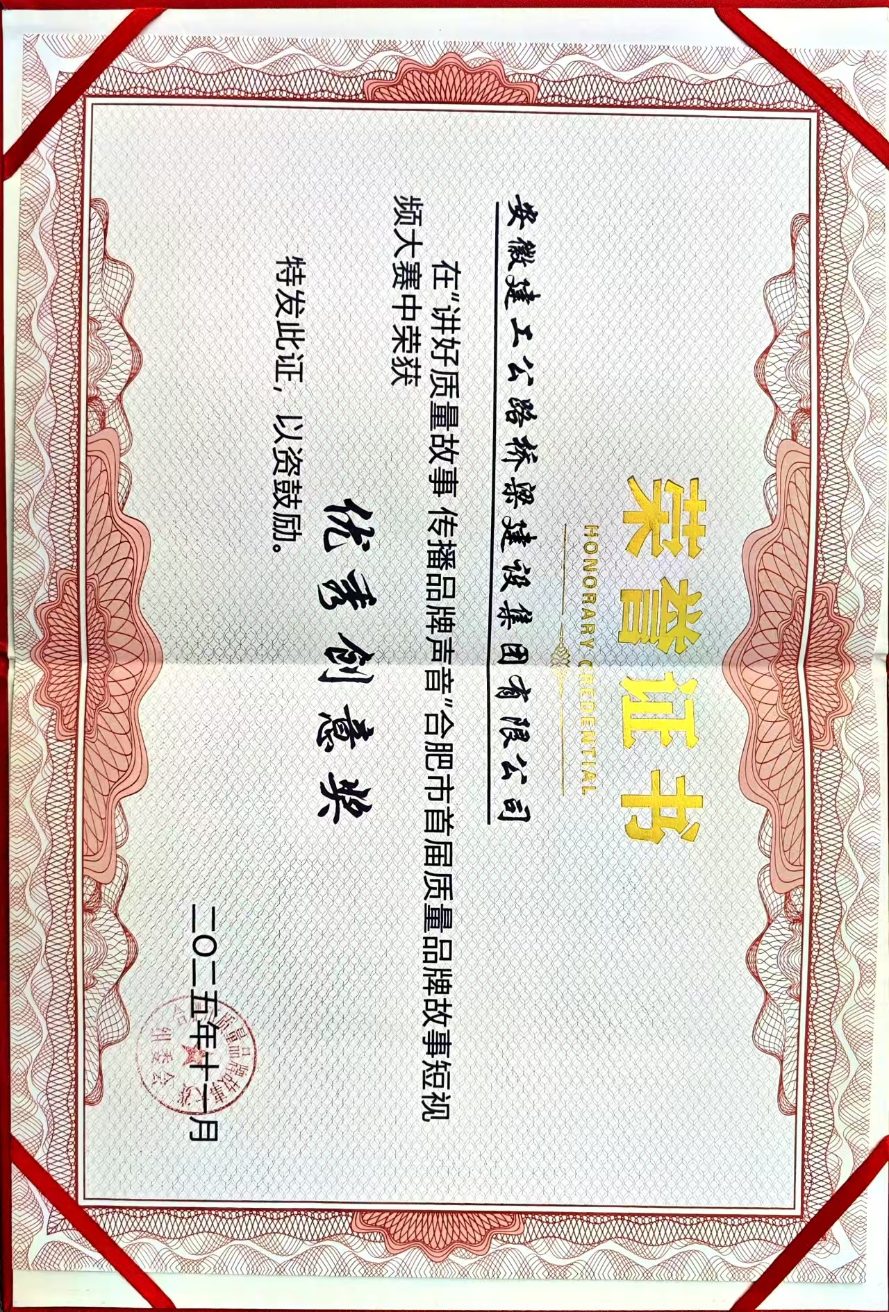 近日,合肥市2025年質量品牌故事短視頻大賽頒獎典禮圓滿落幕。公司參賽作品《井中智造:360°旋轉智能布料機澆筑合肥質量新高度》榮獲“優秀創意獎”。