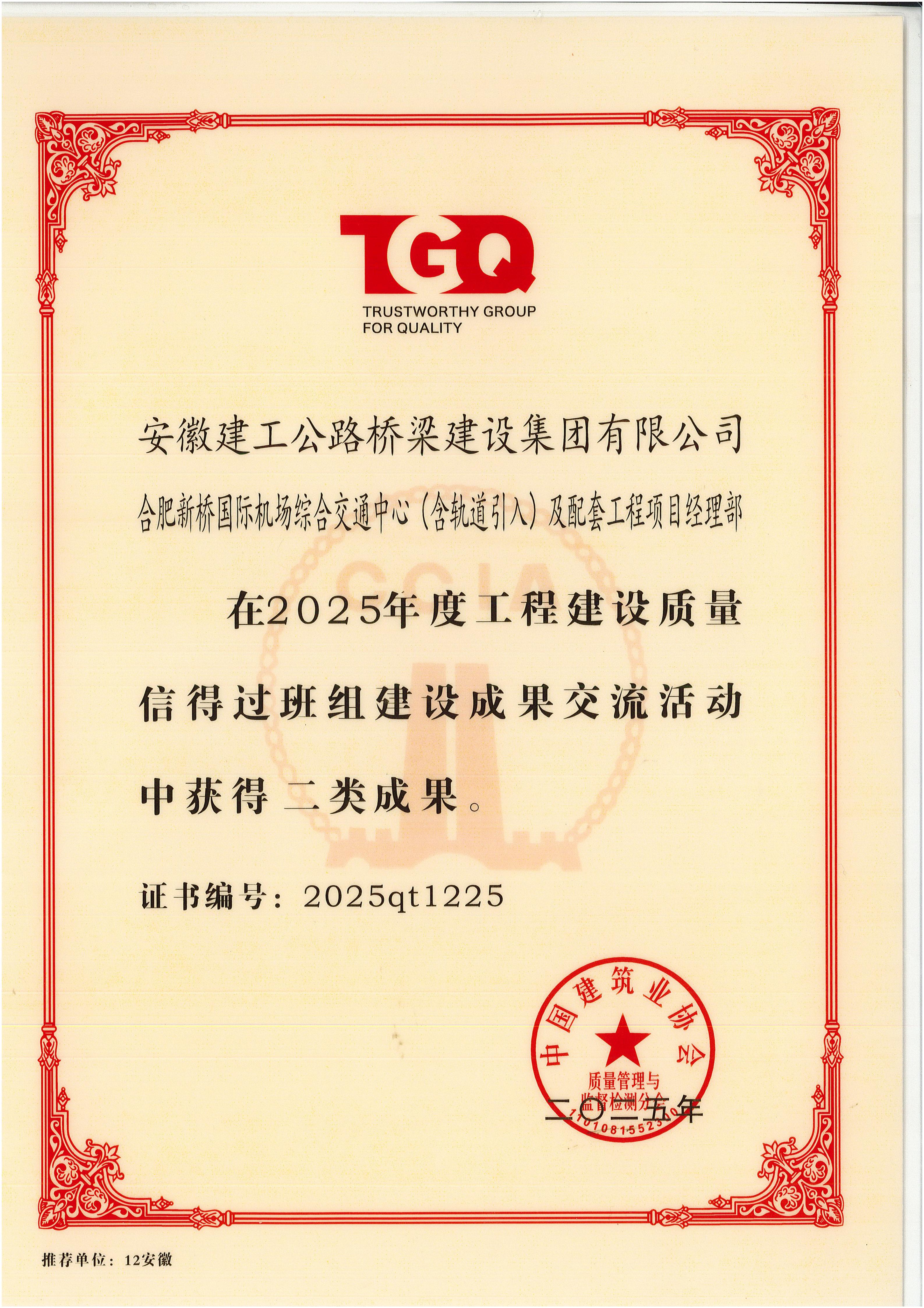 近日,從中國施工企業(yè)管理協(xié)會(huì)、中國建筑業(yè)協(xié)會(huì)傳來喜訊,公司承建的新橋國際機(jī)場(chǎng)綜合交通中心項(xiàng)目憑借扎實(shí)的質(zhì)量管理能力與突出的創(chuàng)新成果,榮獲中國施工企業(yè)管理協(xié)會(huì)示范級(jí)班組、中國建筑業(yè)協(xié)會(huì)2025年度工程建設(shè)質(zhì)量信得過班組建設(shè)成果二類成果。