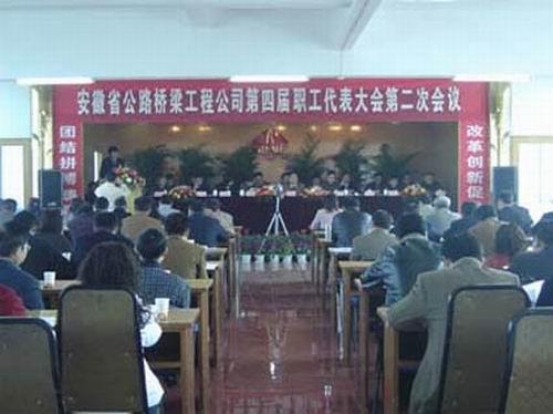 上午10:00,在雄壯的國歌聲中,第四屆職工代表大會第二次會議正式開幕。公司總經理王可武同志向大會作題為《創(chuàng)新管理,提高效益,為實現(xiàn)安徽路橋又好又快的發(fā)展,作出更大的努力》的工作報告。王總在報告中指出,2007年,是公司勵精圖治、喜獲豐收的一年。一年來,在集團的正確領導下,全體員工恪盡職守、踏實苦干,以改革創(chuàng)新為動力,以綜合發(fā)展為主題,強化管理,搶抓機遇,扎實有效地完成了發(fā)展和穩(wěn)定工作,在生產經營、企業(yè)管理、改革改制、黨建文明等方面取得了可喜的成績,圓滿完成了集團下達的指標。