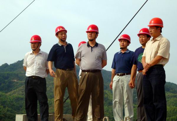程廳長一行一到項目部就馬不停蹄地來到施工現場,一邊詢問施工進展情況,一邊現場查看和指導。程廳長在肯定項目前期安全工作成績的同時,對金桃大橋后期施工安全防范和安全措施提出了具體要求和指導意見。一是后期施工一定要把安全工作放在首位,工期必須服從安全、質量要求;二是要對纜索吊系統進行一次全面的安全隱患排查;三是要注意結構件堆放分布合理;四是要合理安排一線工人作息時間,避開高溫時間施工,以防中暑等;程廳長還對安徽路橋在金桃大橋建設中做出的努力給予了高度評價。