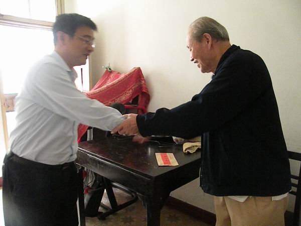 三節前公司領導到困難老職工家慰問 發布時間:2009年09月28日 來源:公司黨辦 發布人: 作者: 瀏覽:4854次 公司黨委積極開展“我們的節日·中秋”主題活動,組織在國慶、中秋、重陽三節前夕看望慰問困難老職工,讓他們共享改革開放的成果,為新中國成立60周年營造一個安定、文明、和諧的社會環境。9月21日至24日,公司總經理、黨委副書記汪衛東、副總經理孫學軍等領導先后看望慰問困難老職工代表,給他們送去了節日的祝福,并帶去慰問金。