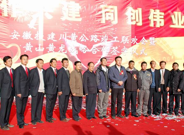 十月的松潘,金風(fēng)送爽,喜事連連。10月14日,安徽援建川黃公路竣工聯(lián)歡會(huì)暨黃山黃龍戰(zhàn)略合作簽字儀式在美麗的黃龍風(fēng)景區(qū)廣場(chǎng)隆重舉行。安徽省政府秘書(shū)長(zhǎng)梁衛(wèi)國(guó)、省交通廳副廳長(zhǎng)丁慶領(lǐng)及四川省、阿壩州、松潘縣各級(jí)領(lǐng)導(dǎo)出席儀式。我公司總經(jīng)理汪衛(wèi)東、黨委書(shū)記陳光磊以及漳黃02標(biāo)項(xiàng)目經(jīng)理陳莘同志作為特邀嘉賓出席典禮。這標(biāo)志著我安徽路橋?qū)谥г膳苏狞S公路建設(shè)任務(wù)的圓滿完成。