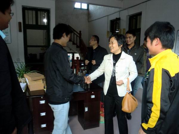 在臨時項目部,陳書記、陸總親切的和每位員工一一握手,向大家表示慰問,并分別對項目部黨群工作、財務管理工作提出具體要求和指導意見。