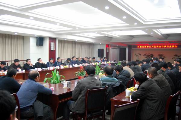 座談會開始前,會場播放了公司宣傳片,展示公司二十五年來的發(fā)展歷程。座談會由副總經(jīng)理盛明宏主持。總經(jīng)理助理傅月斌通報了公司2010年施工總體情況。公司分管領(lǐng)導(dǎo)、各部門負(fù)責(zé)人、項目經(jīng)理分別作了發(fā)言。黨委書記陳光磊指出合作共贏、共同發(fā)展是公司永久追求的目標(biāo),安徽路橋的業(yè)績也凝聚著合作隊伍的努力;合作共贏不僅是要經(jīng)濟(jì)利益,更要追求社會效益;公司各級對合作隊伍的真誠服務(wù)是職責(zé)所在,合作隊伍認(rèn)真履約、堅強給力,就是對公司工作的最大支持。陳書記還表示目前項目已建立了支部、職工小家、職工書屋等,歡迎合作隊伍積極參加,享受權(quán)利。