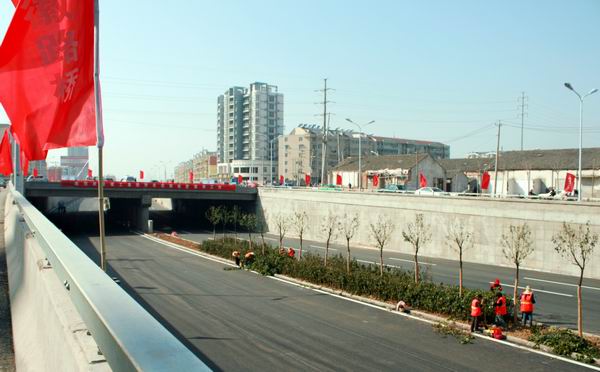 新蚌埠路與北二環路立交橋采取北二環路下穿新蚌埠路的路塹式結構,通過立交銜接,兩條路實現交通分流,成為北部城區的兩條快速通道。該項目自2008年9月開工以來,積極響應公司號召,發揚“團結拼搏、優質高效”的精神,趕進度、保質量、重安全,全體員工們團結一致,艱苦奮斗,于2009年3月順利完成施工任務,比原計劃工期提前了兩個多月,深受業主和社會各界的好評。該項目在施工過程中獲市重點局通報嘉獎,榮獲了建工集團優秀項目部、安全文明示范工地等稱號,項目經理李建成被評為建工集團優秀項目經理,工程組被評為建工集團先進班組。