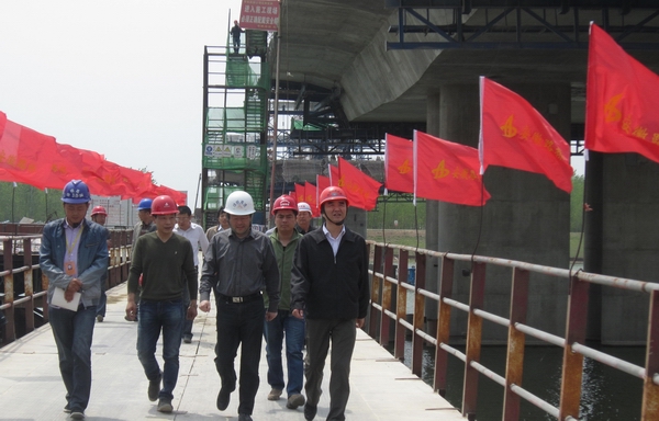 督查中,何局長指出,懷洪新河二號特大橋工程施工難度大、任務重、時間緊,在加快建設的同時更要重視安全管理和工程質量。在安全管理上,要從以人為本的角度做好安全工作,注重預防;在質量管理上,要建立質量控制長效機制。何局長強調,省路橋公司作為一個負責任、有實力的國有企業,在施工安全、工程質量及項目進度上要自我加壓,提高標準,進一步提升企業品牌影響力。
