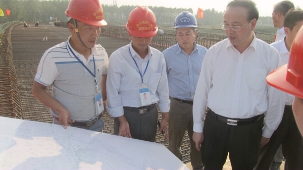 10月9日下午3時,滁州市長張祥安率市有關(guān)部門負(fù)責(zé)人蒞臨滁馬高速03標(biāo),視察指導(dǎo)工作。