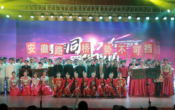 演出現(xiàn)場華燈璀璨,座無虛席,氣氛喜慶熱烈。匯演正式開始前,公司董事長、總經(jīng)理孫學(xué)軍發(fā)表了熱情洋溢的致辭。他首先代表公司向蒞臨現(xiàn)場的嘉賓及長期以來堅持在公司各個崗位的員工及家屬,致以誠摯的問候和新春的美好祝愿,向默默奉獻,為路橋事業(yè)奠基的前輩們致以崇高的敬意。指出,2015年,是宏觀形勢錯綜復(fù)雜的一年,也是公司成績斐然的一年,在建工集團的正確領(lǐng)導(dǎo)下,全體員工凝心聚力,開拓奮進,取得了驕人的業(yè)績。充滿機遇和挑戰(zhàn)的“十三五”已經(jīng)開局,全體路橋人要秉承優(yōu)良傳統(tǒng),凝心聚力,同舟共濟,譜寫安徽路橋新的輝煌。