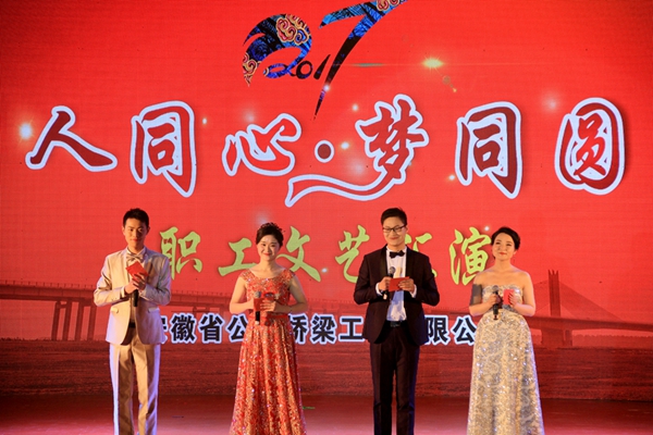 演出現(xiàn)場二樓眺臺正上方懸掛著醒目的橫幅:“堅持創(chuàng)新引領(lǐng) 搶抓發(fā)展機遇 為早日實現(xiàn)‘兩個超百億’目標而努力奮斗”,舞臺正中,“人同心 夢同圓”的晚會主題熠熠生輝。公司黨委書記、董事長、總經(jīng)理孫學軍在致辭中指出,2016年,在建工集團黨委的正確領(lǐng)導(dǎo)下,公司迎來了發(fā)展史上具有里程碑意義的一年,公路工程施工總承包特級資質(zhì)和行業(yè)工程設(shè)計甲級資質(zhì)順利獲批,發(fā)展質(zhì)量大幅提升,競爭力、影響力不斷增強,職工文化生活豐富多彩,企業(yè)活力、凝聚力進一步增強,這是廣大職工共同奮斗的結(jié)果,他代表公司黨委和領(lǐng)導(dǎo)班子向全體職工及家屬表示衷心的感謝和崇高的敬意。對下一步工作,孫學軍強調(diào),2017年,要充分發(fā)揮特級資質(zhì)優(yōu)勢,總結(jié)提升信息化建設(shè),繼續(xù)完善各項基礎(chǔ)管理,進一步加強企業(yè)凝聚力,繼續(xù)推進公司改革發(fā)展事業(yè)向前發(fā)展。