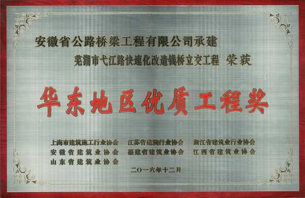 近日,由公司承建的G206公路(南崗-上派段)改建工程4標(biāo)、蕪湖市弋江路快速化改造錢橋立交工程喜獲2016年度“華東地區(qū)優(yōu)質(zhì)工程獎”。