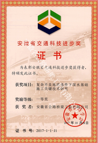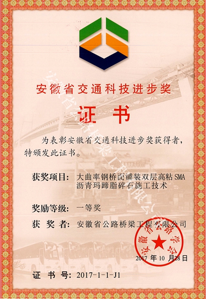 近年來,公司積極實施創新驅動發展戰略,充分依托省級技術中心,重點立足新設備、新材料、新工藝運用,大力推進科技創新,持續加強科技成果轉化,以科技創新助推企業轉型發展、跨越發展、高效發展,取得了良好成績。此次兩項成果榮獲省公路學會交通科技進步獎一等獎,充分體現了在公路工程特級資質新發展平臺上公司科技創新實力的進一步增強。