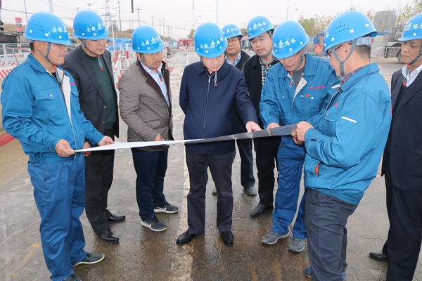 集團公司總經理助理、工程管理部主任童宗勝,公司董事長、黨委書記、總經理孫學軍,副總經理錢申春等陪同。