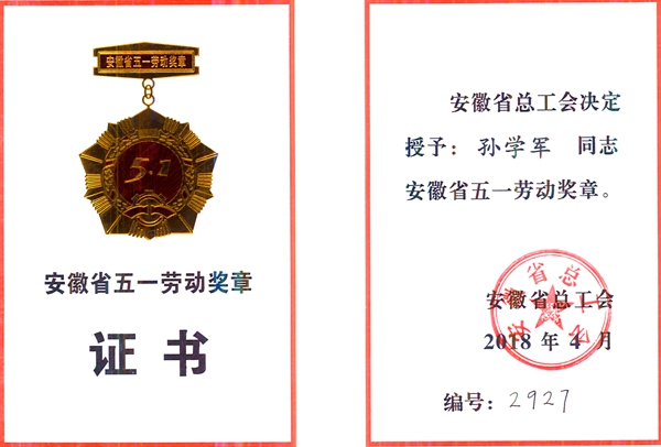 4月28日上午,安徽省“五一”慶祝大會召開,大會隆重表彰了省五一勞動獎狀、獎章、工人先鋒號代表及省勞動競賽先進集體、個人,公司黨委書記、董事長、總經理孫學軍榮獲安徽省五一勞動獎章。
