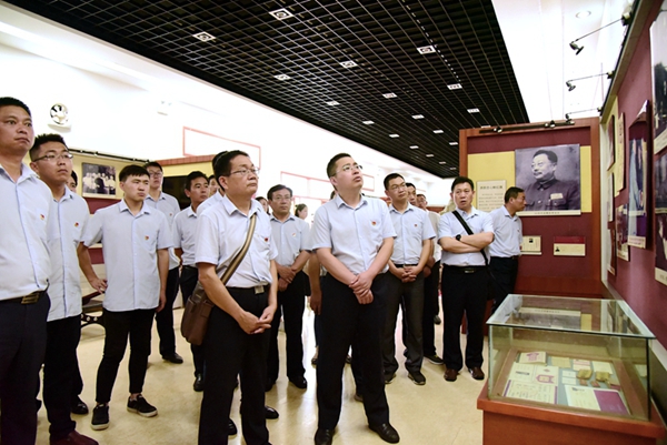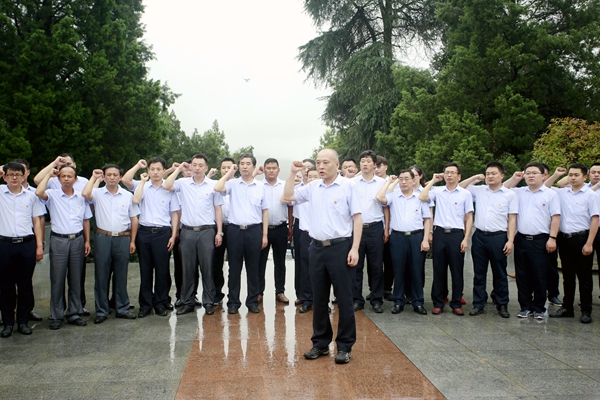 當(dāng)天,在大約200公里外的合肥市李克農(nóng)故居和渡江戰(zhàn)役紀(jì)念館,市政分公司黨總支和公司機(jī)關(guān)第一、第三黨支部正組織黨員接受革命傳統(tǒng)教育。在一幅幅歷史照片和一件件革命文物前,伴隨著解說(shuō)員的細(xì)致講解,大家放慢腳步,細(xì)致看,認(rèn)真聽,凝神想,讓革命教育入腦入心。在莊重而響亮的集體入黨宣誓聲中,展現(xiàn)的是新時(shí)代安徽路橋黨員的激情、責(zé)任與擔(dān)當(dāng)。