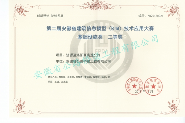 公司榮獲第二屆安徽省BIM技術(shù)應(yīng)用大賽二等獎(jiǎng)