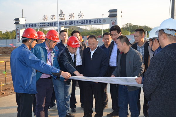 10月17日下午,廬江縣委書記王連貴實地調研徽州大道項目建設情況,縣委常委、常務副縣長潘炳生等陪同。