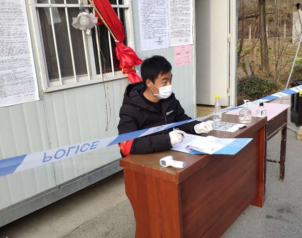 阜南S305項目團支部書記劉楓的“年”是在疫情卡點和社區工作人員一起度過的。他所在的東至縣堯渡、梅林社區是縣疫情防控的重點區域,這意味著在這里值守更容易被病毒趁機而入,而劉楓卻主動請戰,提出要和父母一樣到最危險卡點去值守。劉楓父親是當地的一名干部,母親是一名醫務工作者,都奮戰在疫情防治的一線。春寒料峭,一場春雪下來,氣溫驟降十幾度,劉楓一直堅守在室外工作,累了、困了就在值班卡點旁的簡易值班室里稍作休息。