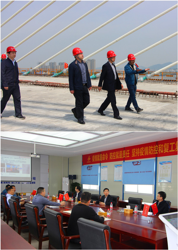 王厚良深入施工現場,實地調研項目建設情況,查看了項目主橋承臺、塔柱、斜拉索、主梁等建設情況,詳細詢問了主橋合龍計劃。在項目部會議室,王厚良認真聽取了項目負責人關于工程建設管理的工作匯報,對工程進度、安全質量和科技創新管理及黨建工作開展等情況進行了全面了解。王厚良對項目建設情況表示肯定。他強調,要繼續強化安全管理,做好工程收尾工作,加強管理經驗和技術創新總結,為創優奪杯打好基礎。要結合工程施工管理和技術亮點,加強宣傳,展示企業形象、實力,擴大市場影響力。要繼續提高經營能力水平,在長江大橋市場、軌道交通市場進一步拓展,實現項目落地。