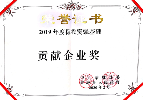 公司榮獲蒙城縣穩投資強基礎貢獻企業獎 發布時間:2020年08月17日 來源:市政分公司 發布人: 作者:黃輝煌 瀏覽:2574次 近日,蒙城縣委、縣政府印發了《關于2019年度全縣綜合考評結果的通報》文件,對2019年度對蒙城社會經濟發展貢獻較大的單位進行了表彰。公司榮獲蒙城縣穩投資強基礎貢獻企業獎。