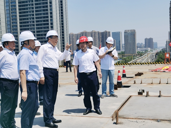在項目主線橋鋼箱梁施工現場,李錦斌聽取了公司黨委書記、董事長錢申春關于項目概況、施工工藝和施工進度的匯報,仔細詢問了項目風險隱患識別、風險防范舉措、如何保障安全施工等工作開展情況,對項目的安全生產工作表示肯定。李錦斌再三叮囑,要堅持綜合管控、分類治理、壓實責任、全面覆蓋,做到排查精準、管理精細、措施精當,有效化解各類安全生產風險,真正實現技術過關、施工過關、質量過關、安全過關。