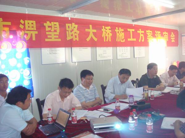 6月1日,六安市淠望路大橋索塔下橫梁、索塔、主橋邊跨及引橋支架現(xiàn)澆施工方案評審會在項目部會議室召開。會議由公司的總工程師彭申凱主持,特邀了安徽省公路局總工朱新實、安徽省交通規(guī)劃設計研究院橋梁分院院長王勝斌、副院長席進、合肥工業(yè)大學教授方詩圣、安徽省交通職業(yè)技術學院土木系主任王豐勝等知名橋梁專家。六安市建委、質(zhì)監(jiān)站、安檢站、淠望路大橋監(jiān)理部、監(jiān)控等單位相關代表也參加了會議。