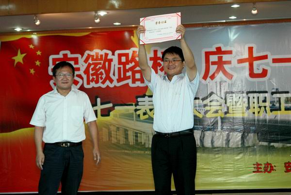 上午8:30,在表彰大會上,橋梁公司黨支部榮獲了“先進黨支部”優秀稱號,支部書記劉振嶺獲得“優秀黨務工作者”稱號,公司員工錢申春、李建成等人榮獲“優秀黨員”榮譽稱號,北二環項目部趙明星紀念改革開放征文二等獎。這些榮譽稱號不僅僅是橋梁公司黨支部和黨員的光榮,也是對他們工作的充分肯定。在過去的一年里,橋梁公司全體黨員在公司黨委和橋梁黨支部的直接領導下,做了大量的基礎性工作,各項目部努力爭創“黨員先鋒號”和“青年文明號”工程,黨員同志在各自崗位上充分發揮了先鋒模范作用。特別是今年4月30日,橋梁公司以科學發展觀為指導,著手加強員工團隊意識培訓,取得了較好的成績。