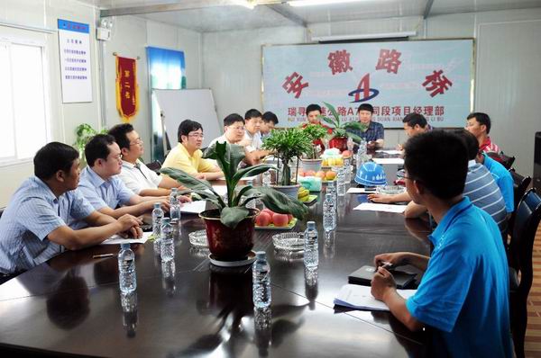 會上,投資集團劉總肯定了我項目部在施工建設(shè)方面所取得的成績,認為瑞尋A7標項目部總體施工計劃好,施工組織能力強,給整個工程的建設(shè)創(chuàng)造了良好的條件,也給兄弟標段項目部施工建設(shè)起到了示范作用。同時希望安徽路橋項目部繼續(xù)鼓足干勁,在以后的安全生產(chǎn)和質(zhì)量管理各方面為瑞尋高速公路工程建設(shè)起到“標兵”作用。