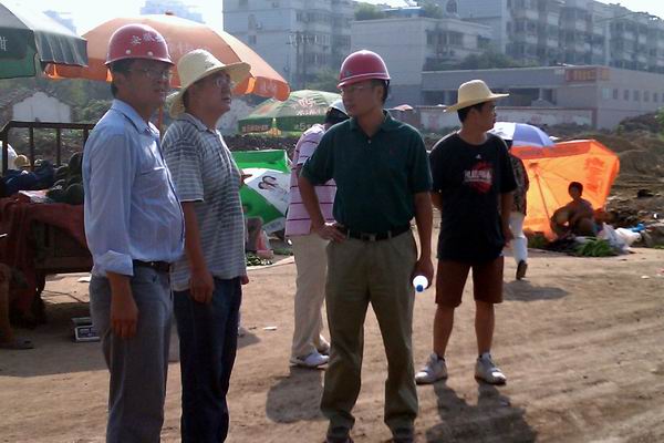 在市政宋斗灣路工程全力進行橋面系及濱河路引橋施工的重要時刻,在合肥市暢通一環J標工程道排、電排及樁基等全面施工階段,市重點局領導一行前往一環J標工地和宋斗灣路工地檢查指導工作,項目經理李建成、副經理王明禮全程陪同。