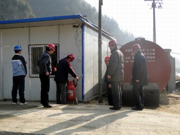 本次檢查由分管安全的黨支部書記邵建新帶隊,生產副經理朱達霏、安全部長萬和國及各工區長、工區專職安全員共同參加,主要對各工區施工點現場逐一進行排查,確保不留安全隱患。檢查組重點針對拌合站的防盜、防滑和用電安全、梁場的臨時用電、梁場張拉操作及安全交底、橋梁施工欄桿防護、邊坡施工防護和油庫防火設施進行清查。檢查拌合站時,發現拌合站人員防盜意識不強,人走不關門,給予負責人嚴厲批評。對梁場實施張拉施工強調指出一定要按照操作規程進行;針對橋面施工橋面防護網脫落的情況,當場處理,并給予責任人下發整改通知書;在油庫旁邊檢查滅火器情況,當場演示滅火器的使用。
