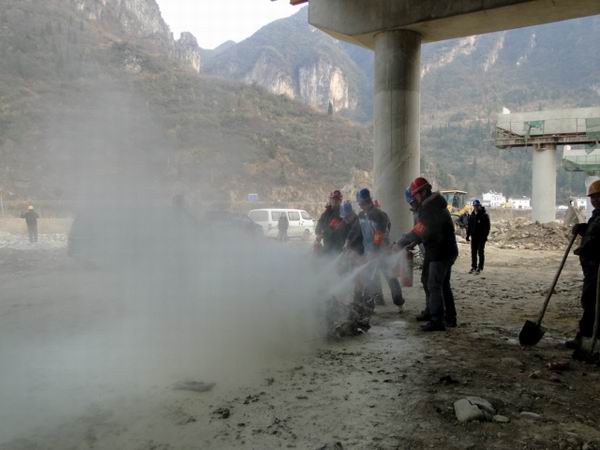 為加強冬季防火安全工作,1月16日,宜巴09標(biāo)在橋梁一工區(qū)組織進行防火演練,以檢驗并增強我部發(fā)現(xiàn)安全隱患、及時處理的應(yīng)急能力。本次演練由項目部分管安全工作的黨支部書記邵建新?lián)慰傊笓],安全部部長萬和國擔(dān)任現(xiàn)場指揮,項目總工、各工區(qū)區(qū)長和現(xiàn)場施工班組負(fù)責(zé)人到場參與演練。