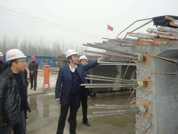 視察過程中,何站長對我部預制梁場的施工質量、工藝給予了充分的肯定和贊揚,通過察看安全警示牌、詢問現場安全員,對我部安全工作的全面細致也豎起了大拇指,并對我安徽省公路橋梁工程公司表達了由衷的贊許。在肯定我們的工作成績的同時,何站長也要求我們要繼承和發揚安徽省路橋公司的優良傳統,細化工作、進一步提高工程質量。