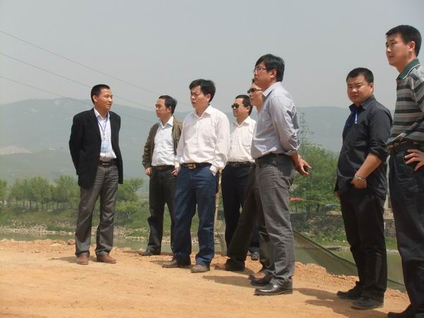 何局長首先來到我部北山河大橋施工現場,觀看主橋11#墩部位插板樁完成后的主墩承臺開挖情況及引橋樁基的施工情況。在聽完項目經理冷峰對當前大橋施工的系統介紹后,何局長對我部大橋施工的質量控制及安全管理提出了具體要求。