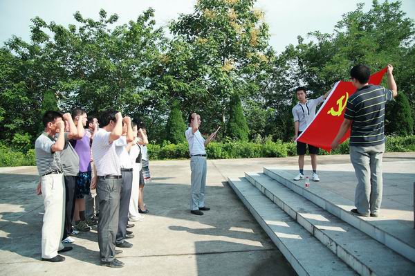 下午,大家興致勃勃的前往獨山革命舊址群參觀瞻仰。獨山是革命老區(qū),它為中國革命和民族解放事業(yè)作出了巨大貢獻,同時也付出極大的犧牲。我們?nèi)w黨員在汪書記的帶領下,在莊嚴的紀念塔下,重溫入黨宣誓誓詞。