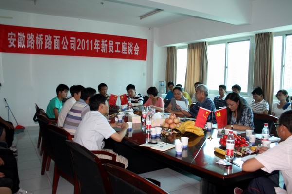 為進一步了解新員工的思想動態,促進員工之間、員工與領導之間的溝通和交流,使新進員工盡快融入到安徽路橋路面公司這個大家庭中來,7月6日上午,安徽路橋路面公司2011屆新員工座談會在路面公司六樓會議室舉行。公司黨支部書記王年保、總經濟師袁青嶺、工會副主席姚光群、租賃公司經理蔡傳勇以及周六路項目經理王小杰、蚌淮路項目副經理姚琪等領導及新進員工40余人參加了座談會。會議由人力資源部經理錢紅梅主持。