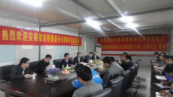 在項目召開的會議上,杜經理介紹了安徽路橋道路工程公司成立的背景、規劃及目標,對分公司領導班子進行了介紹。杜經理強調指出基層項目部要加強隊伍建設和人才培養,為道路公司的長遠發展奠定基礎。李書記傳達了公司六屆二次職代會精神,帶領大家認真學習了汪衛東總經理的工作報告和陳光磊書記的總結講話。項目經理余躍對該項目工程概況與項目人員情況進行了介紹。