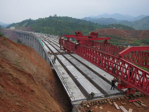 今年贛南雨季較之往年稍微提前,三月雨水繁多,給江口大橋的梁板安裝帶來了很大影響。作為開年施工建設(shè)中的控制性施工點(diǎn),我部積極采取多種措施,在確保施工安全和工程質(zhì)量的前提下,大力推進(jìn)梁板安裝施工進(jìn)度。項(xiàng)目部成立以項(xiàng)目經(jīng)理為組長的梁板安裝工作組,搶抓有利天氣開展安裝工作,于2012年3月26日創(chuàng)造全線單天安裝10片30米T梁的記錄(包括架橋機(jī)過孔),扎扎實(shí)實(shí)的把工作落在實(shí)處,為我部完成江口大橋的半幅貫通奠定了堅實(shí)基礎(chǔ)。
