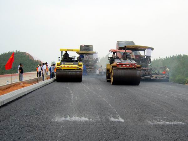 為了確保此次試驗段的順利攤鋪,項目部研究制定了詳細的施工方案,并提前召開了專項方案技術交底會,對施工工藝流程、施工組織安排及注意事項等進行了詳細的交底。28日早上,在項目領導的精心安排和組織下,我部工程技術人員和作業人員對瀝青試驗段攤鋪現場和瀝青拌和站進行準備工作和設備最后檢查。上午11時,伴隨著陣陣鞭炮聲,此次瀝青試驗段按照預先計劃順利攤鋪,現場機械在指揮人員的引導下有條不紊的作業。最終經過我部廣大施工作業人員的齊心努力,下午18時順利完成此次ATB-25瀝青碎石上基層試驗段的攤鋪。