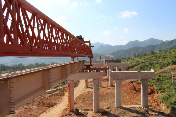 昌寧高速C5標完成龍坊高架第一片40米T梁架設 發布時間:2014年09月18日 來源:昌寧高速C5標 發布人: 作者:王振堂 瀏覽:2873次 9月18日上午9時18分,昌寧高速公路C5標龍坊高架第一片40米T梁順利架設成功,標志著作為全線控制性工程的龍坊高架橋進入了上部施工階段,極大地提振了項目部全體員工和參建隊伍的戰斗精神。